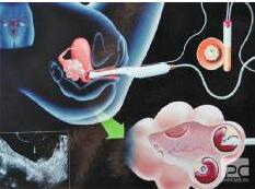 在促卵泡发育经过10天左右,卵泡发育成熟后,医生经何超引导下经阴道穿刺取出成熟的卵子,在女方取卵的同事男性也进行取精。将取得的精卵放在特殊的培养基中进行体外授精,在经过约5至6天后,受精卵发育成囊胚后准备进行下一阶段的移植。